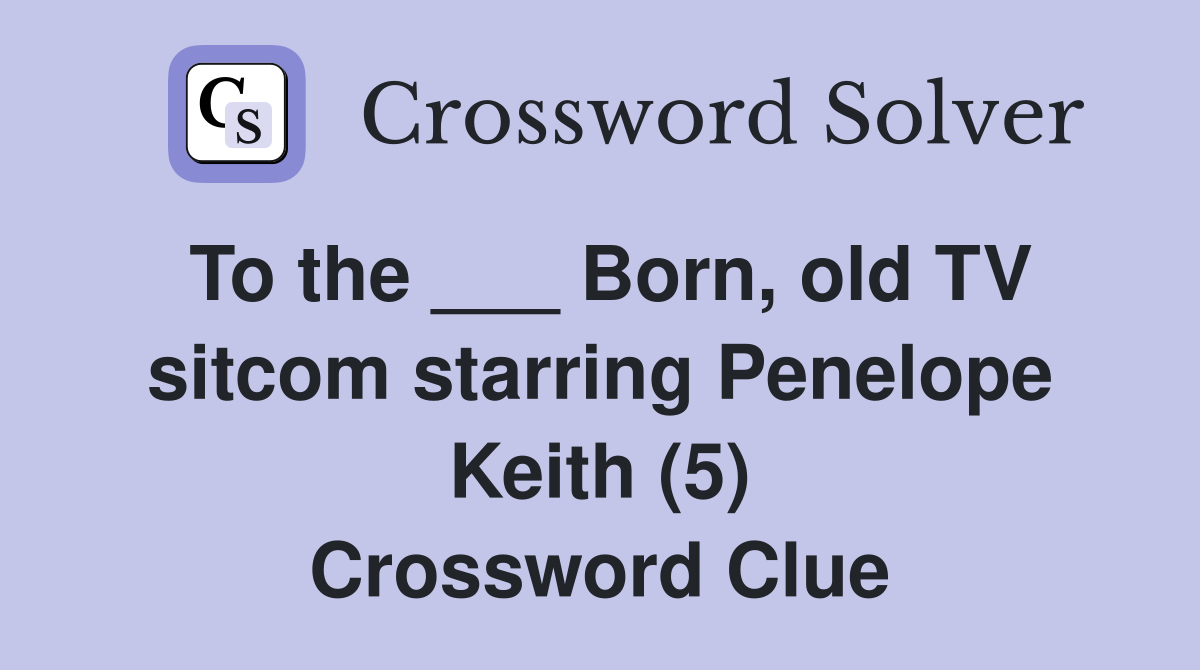 To the Born old TV sitcom starring Penelope Keith (5) Crossword