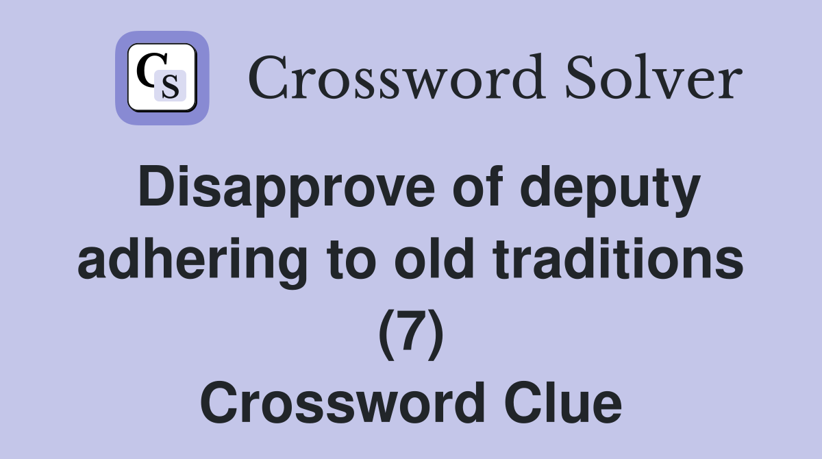 Disapprove of deputy adhering to old traditions (7) Crossword Clue