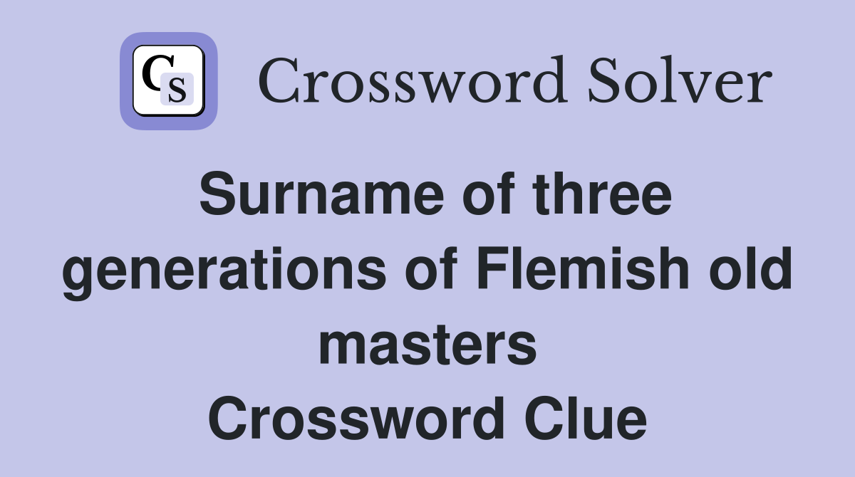 Here are some of the images for Old Masters Crossword Clue that we found in our website database.