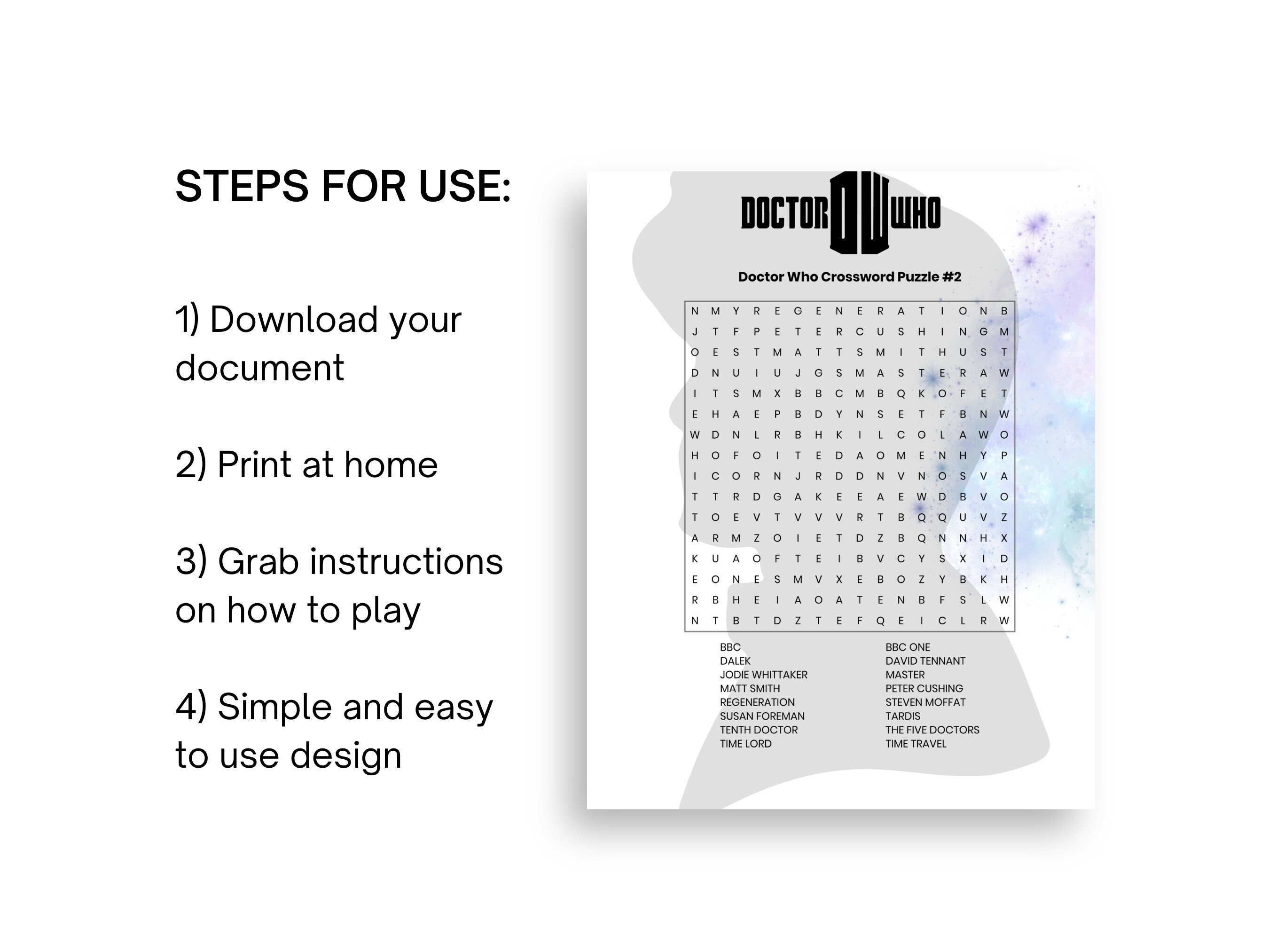 Doctor Who Printable Crossword Puzzle party Game tardis dr Who