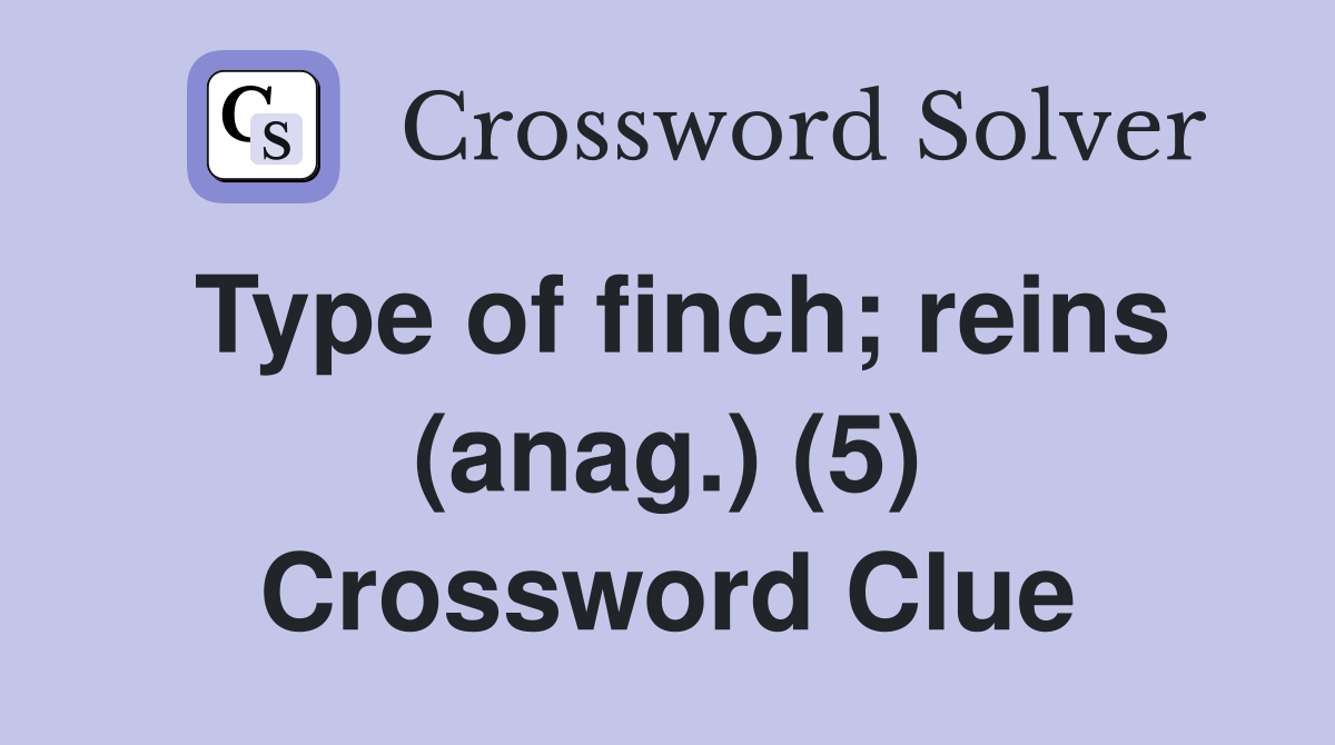 Type of finch reins (anag ) (5) Crossword Clue Answers Crossword