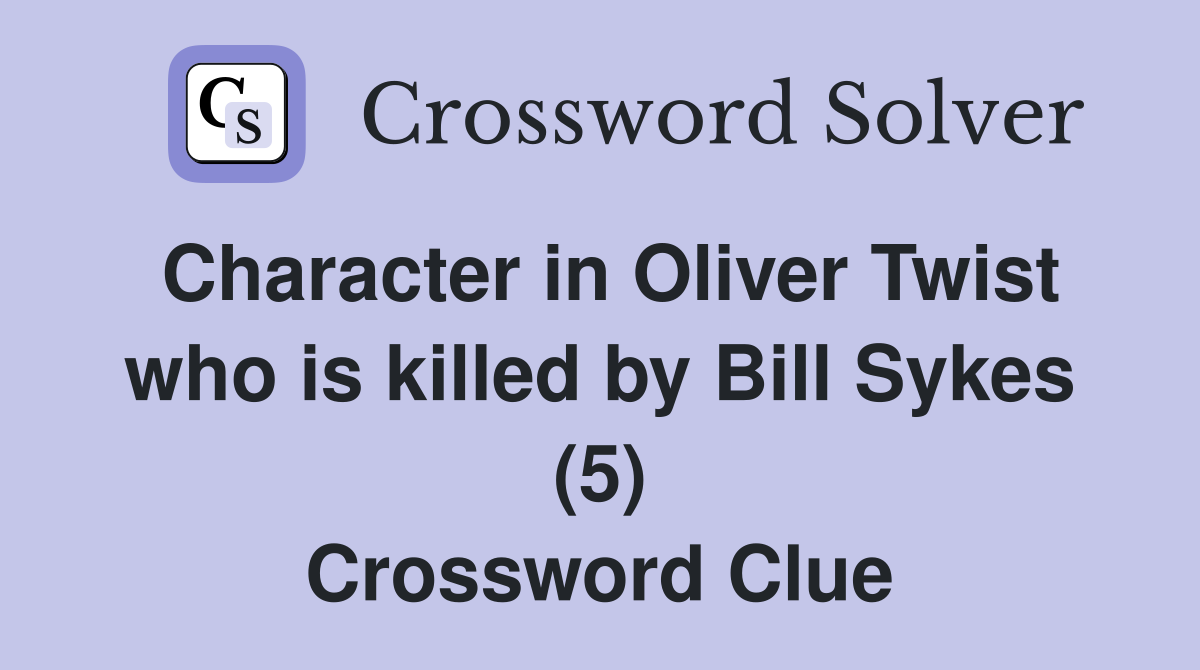 Character in Oliver Twist who is killed by Bill Sykes (5) Crossword