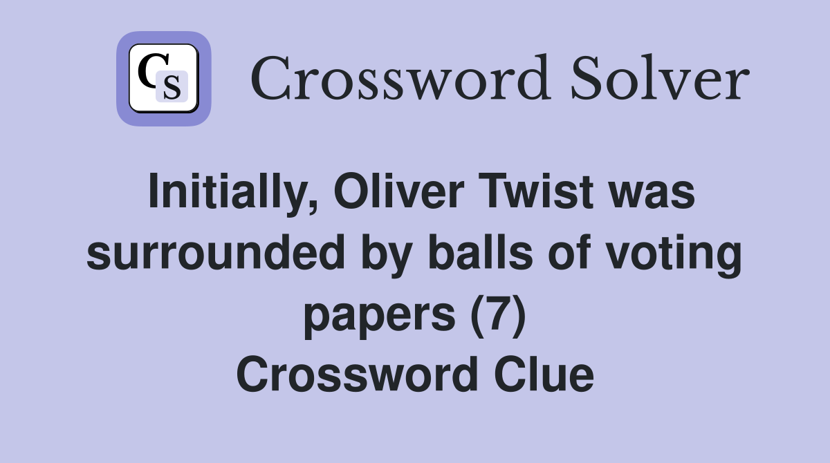 Here are some of the images for Oliver Twist For One Crossword Clue that we found in our website database.