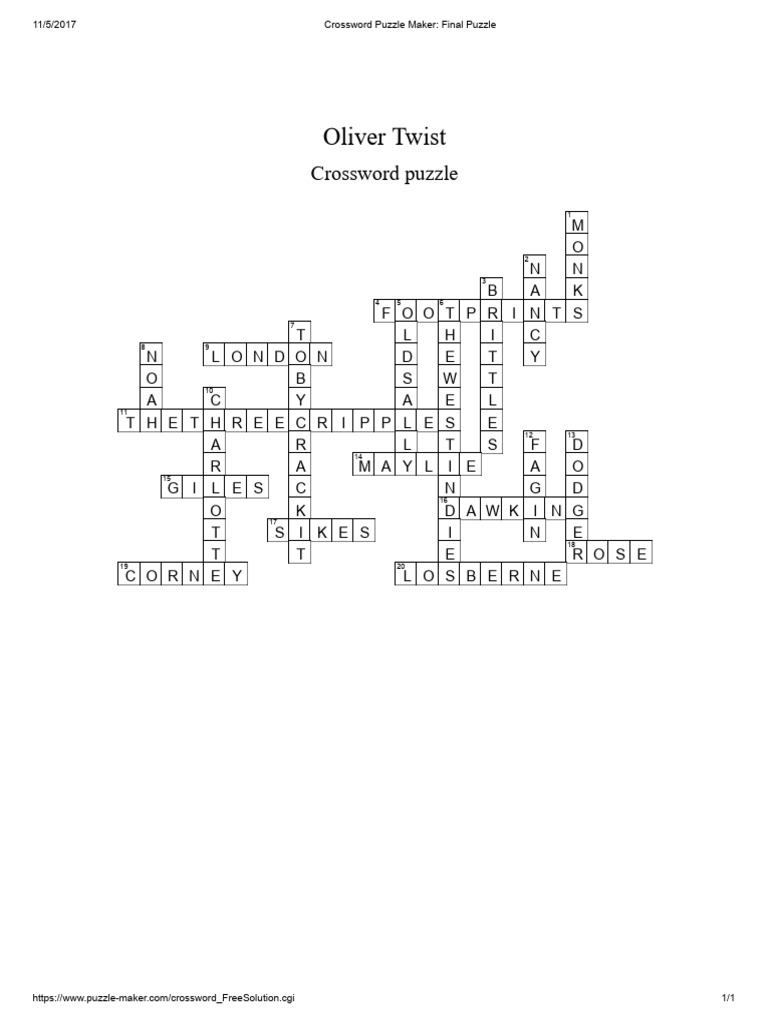 Oliver Twist Word Crossword Puzzle Crossword Labs