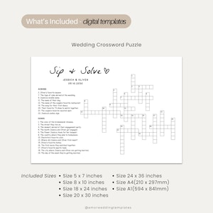Wedding Crossword Sip and Solve Template Wedding Giant Puzzle Custom