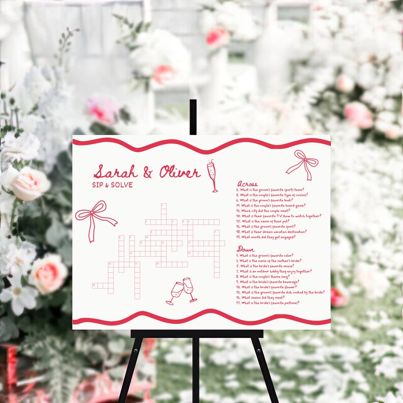 Sip and Solve Wedding Crossword Coquette Personalized Puzzle Custom