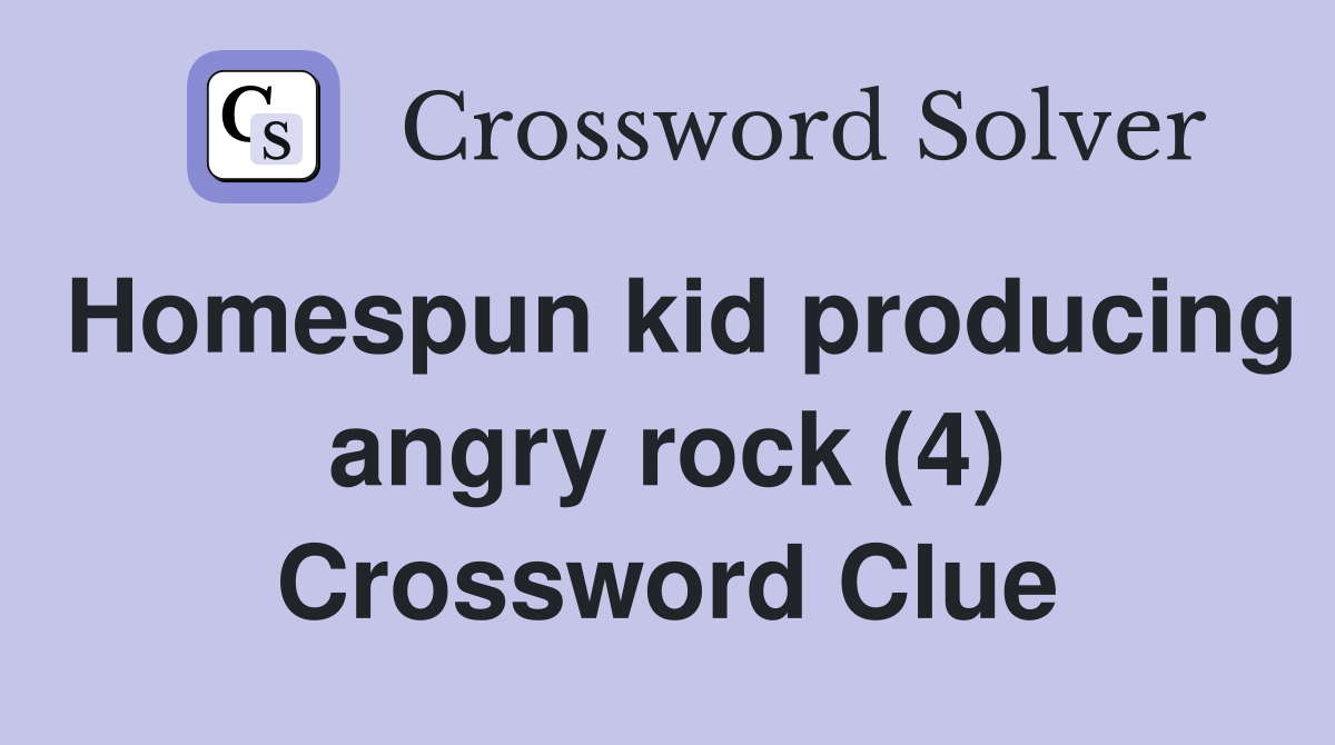Homespun kid producing angry rock (4) Crossword Clue Answers