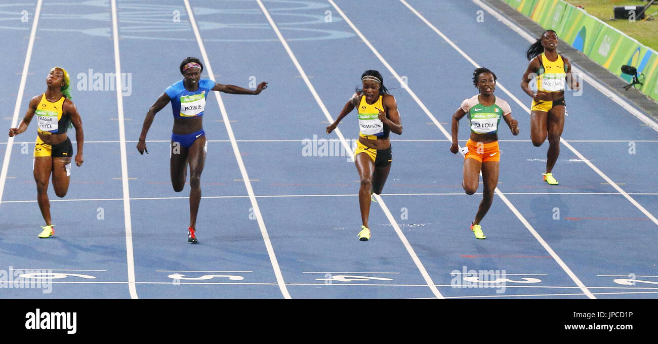 Jamaican sprinter Elaine Thompson (R) wins the women #39 s 100 meter final