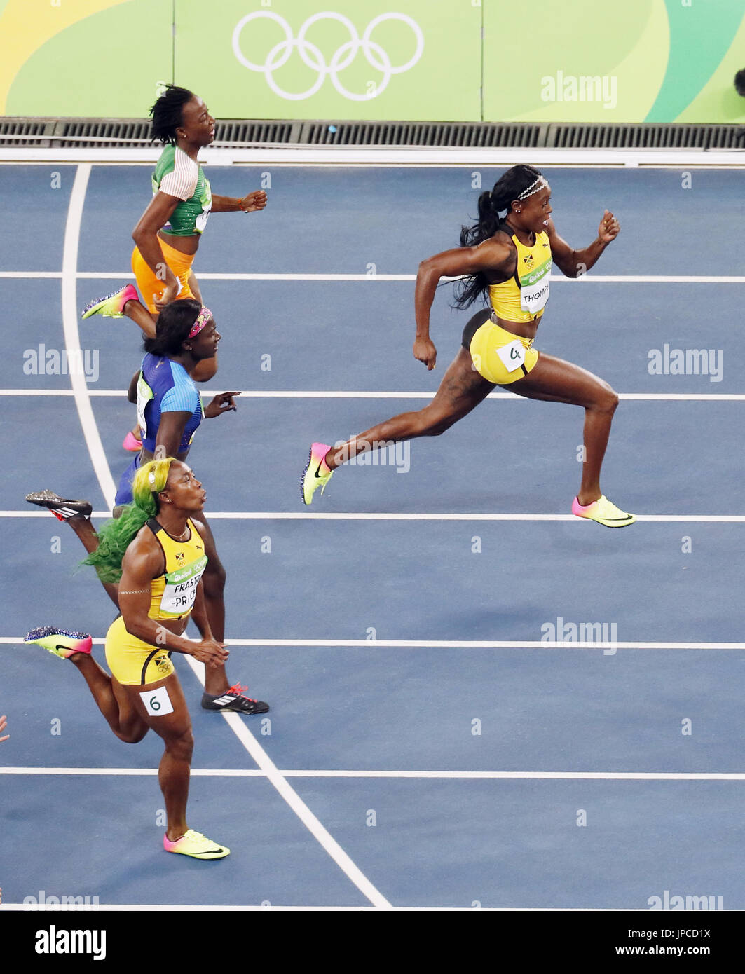 Jamaican sprinter Elaine Thompson (C) wins the women #39 s 100 meter final