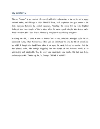 Isabella *Doctor Zhivago* is a sweeping 1965 epic romantic drama