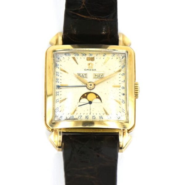Omega #39 Cosmic #39 Triple Date Moonphase 18K 1952 Vintage Gold Watches