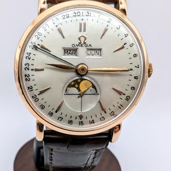 WTS Omega Cosmic Moonphase Triple Calendar Solid Rose Gold 1940s Ref