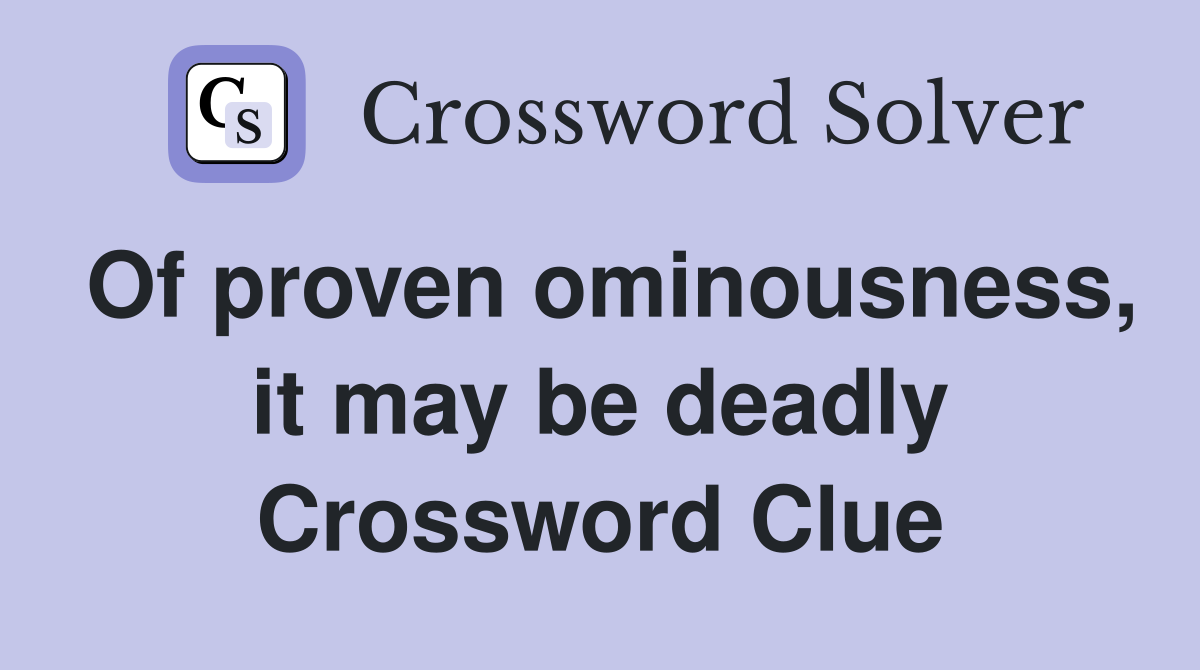 Of proven ominousness it may be deadly Crossword Clue Answers