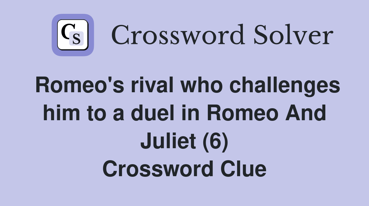 Romeo s rival who challenges him to a duel in Romeo And Juliet (6