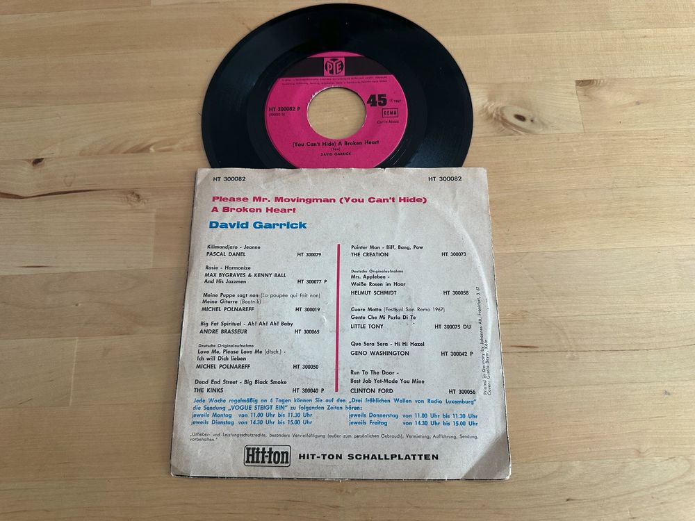 DAVID GARRICK tolle Single Please Mr Movingman Kult Top 60 #39 (Gebraucht
