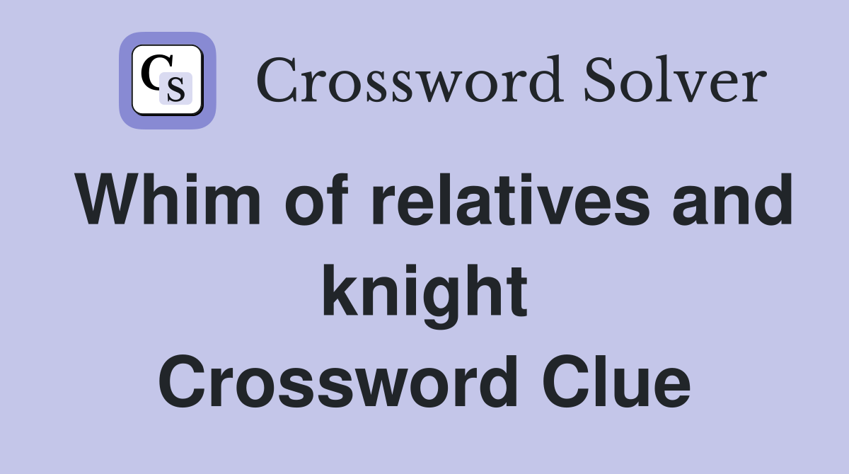 Whim of relatives and knight Crossword Clue Answers Crossword Solver