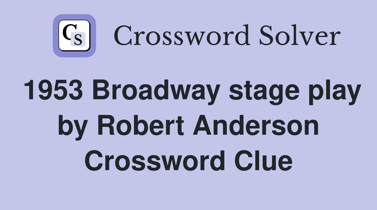 1953 Broadway stage play by Robert Anderson Crossword Clue Answers