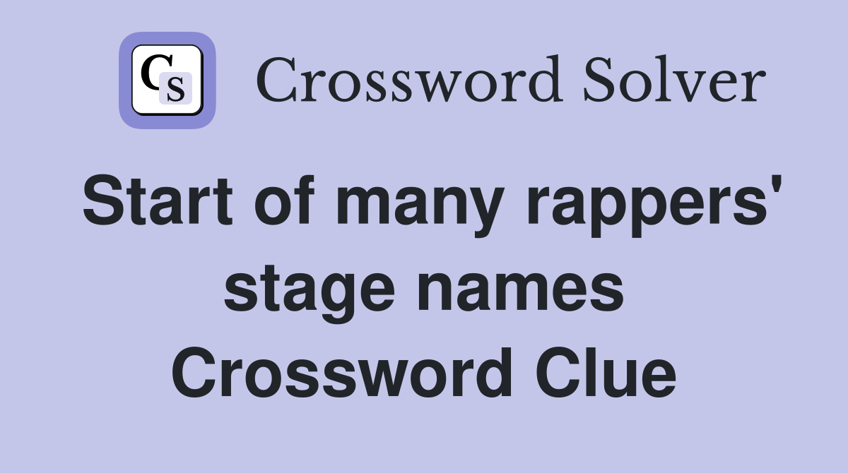 Start of many rappers #39 stage names Crossword Clue Answers Crossword