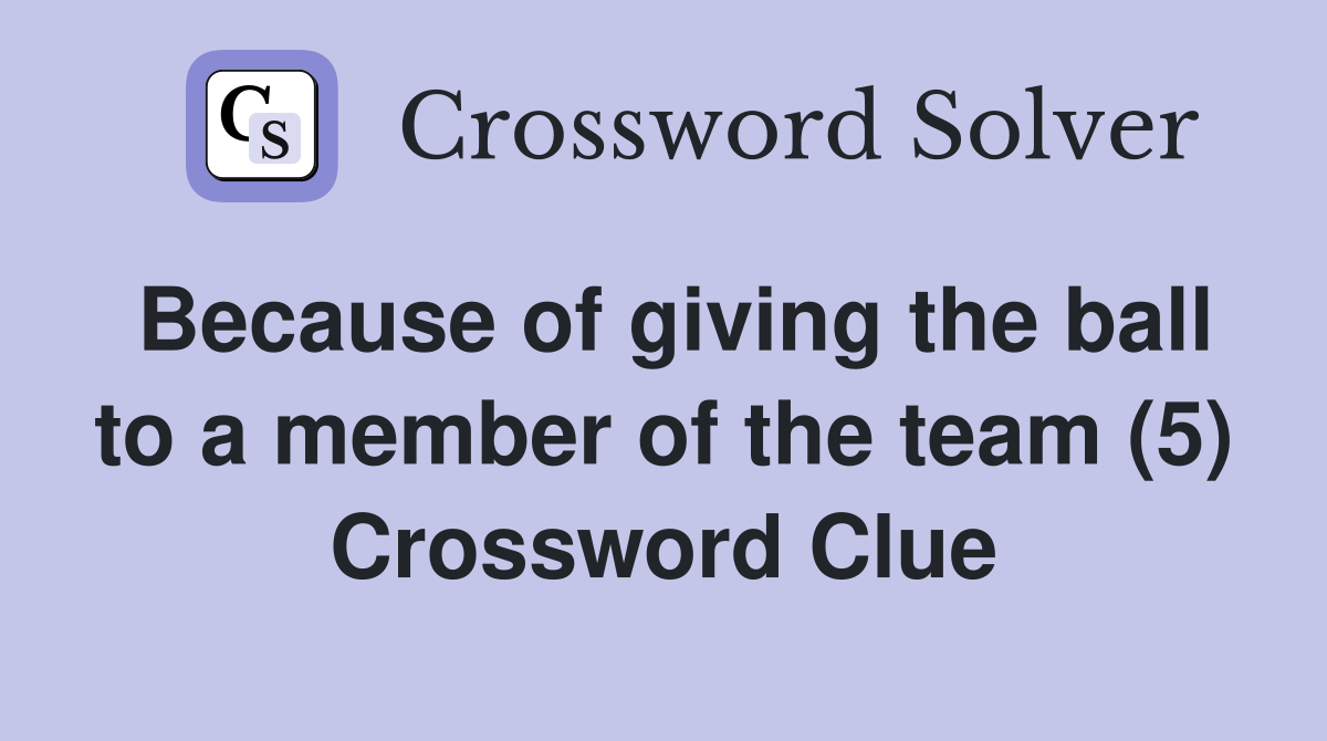 Because of giving the ball to a member of the team (5) Crossword Clue