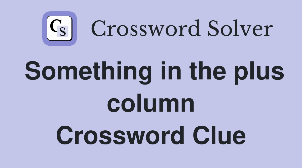 Something in the plus column Crossword Clue Answers Crossword Solver