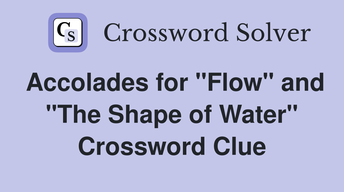 Accolades for quot Flow quot and quot The Shape of Water quot Crossword Clue Answers