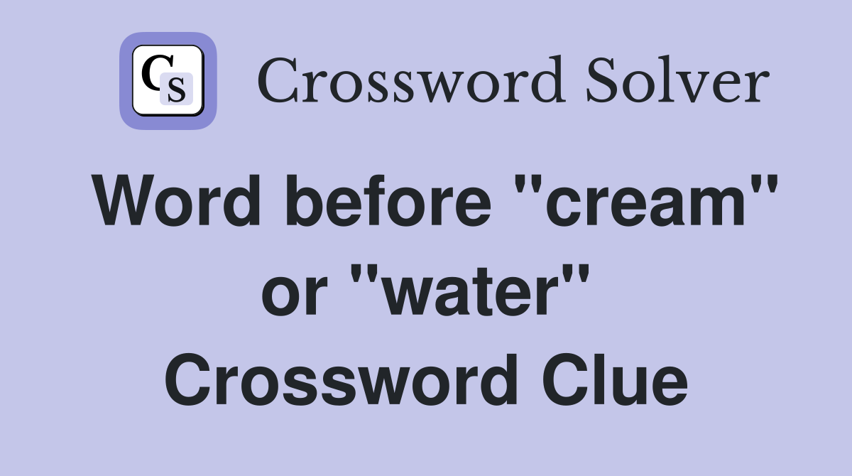 Word before quot cream quot or quot water quot Crossword Clue Answers Crossword Solver