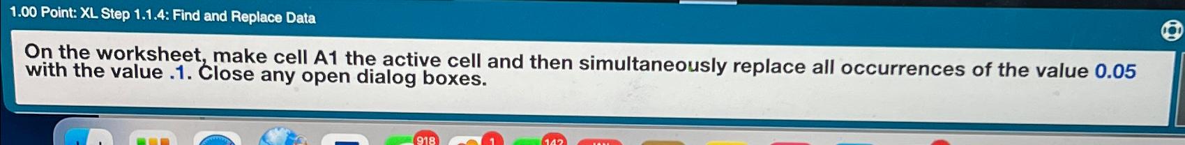 Solved 1 00 Point: XL Step 1 1 4: Find and Replace DataOn Chegg com