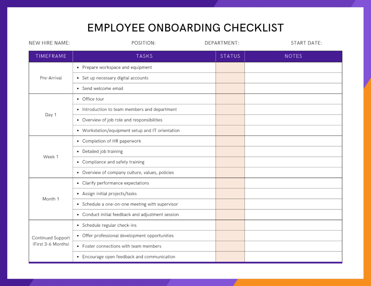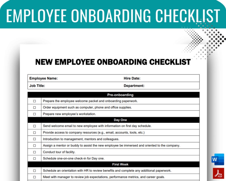 New Employee Onboarding Checklist Template (word Printable Editable