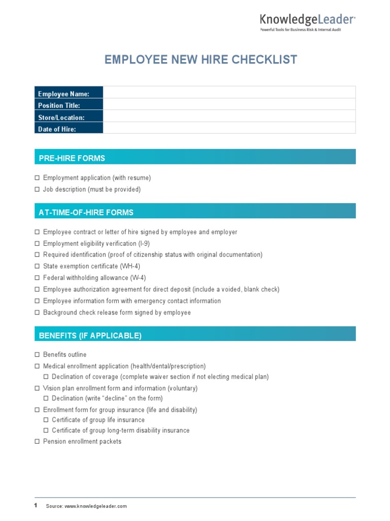 Employee New Hire Checklist PDF