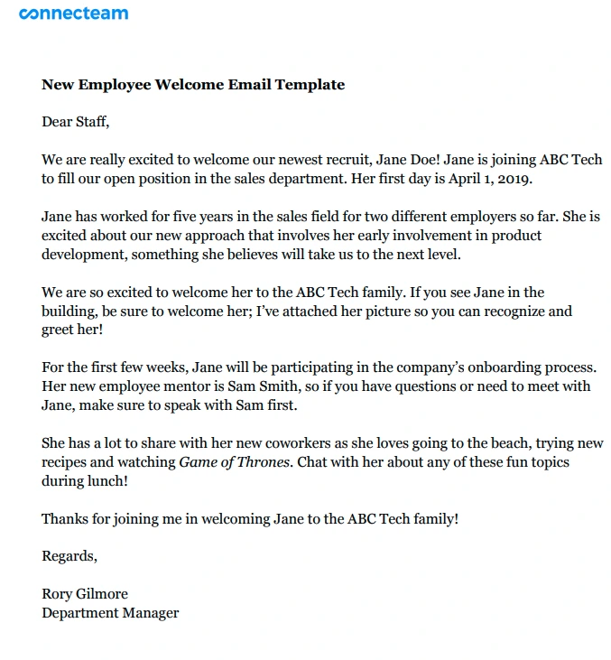 How To Write a Welcome Email To a New Employee Free Drafts Tango