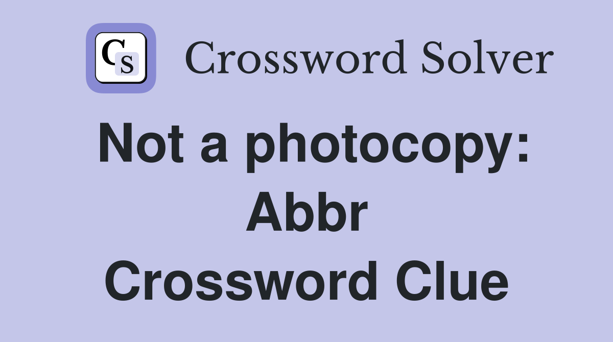 Not a photocopy: Abbr Crossword Clue Answers Crossword Solver