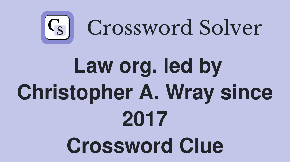 Law org led by Christopher A Wray since 2017 Crossword Clue Answers
