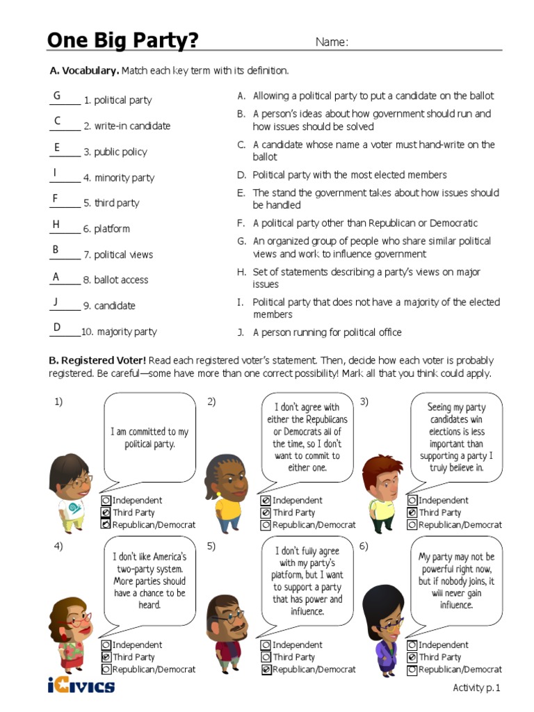 One Big Party PDF Political Parties Elections Worksheets Library