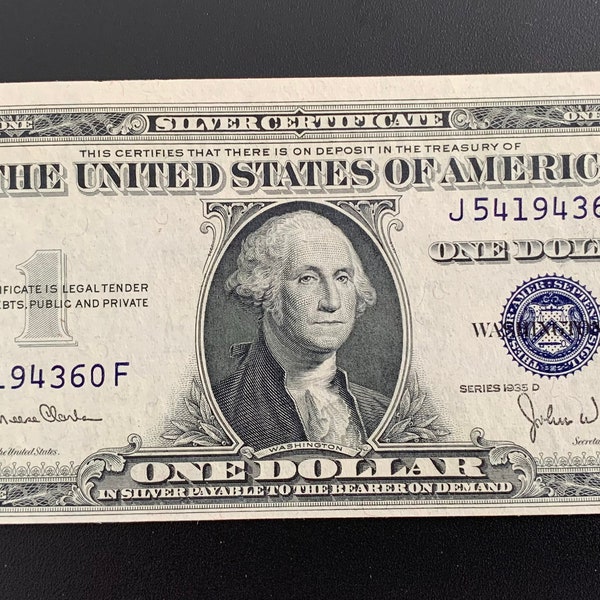 1935 D Silver Certificate Etsy