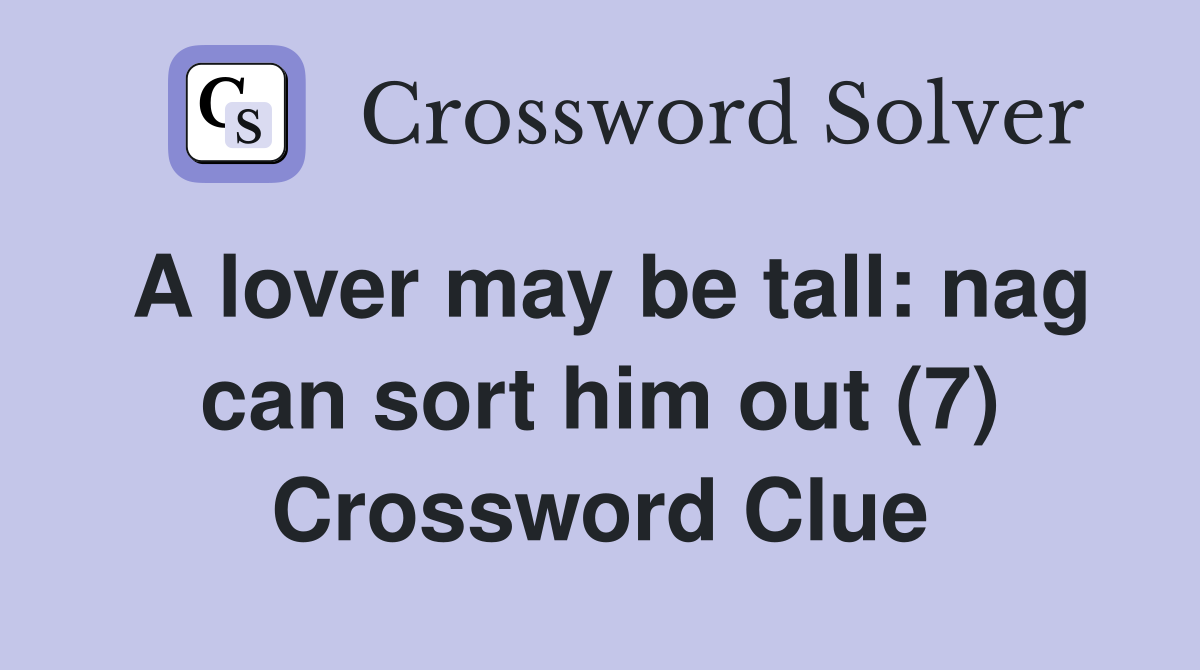A lover may be tall: nag can sort him out (7) Crossword Clue Answers