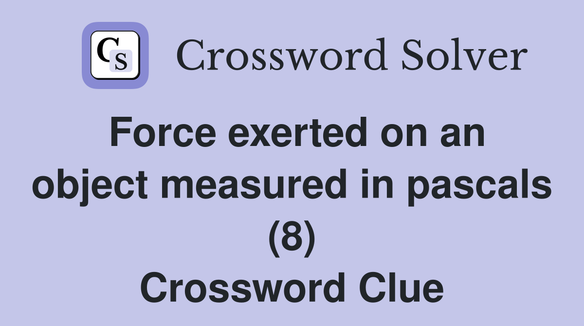 Force exerted on an object measured in pascals (8) Crossword Clue