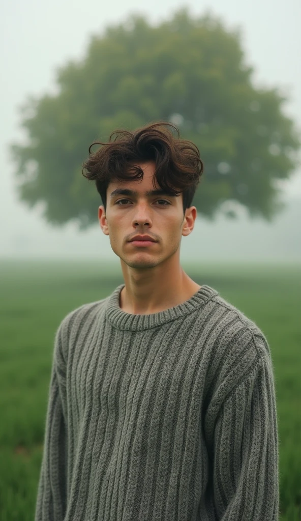 A ager named Adrián wearing a gray sweater and in the back there is a
