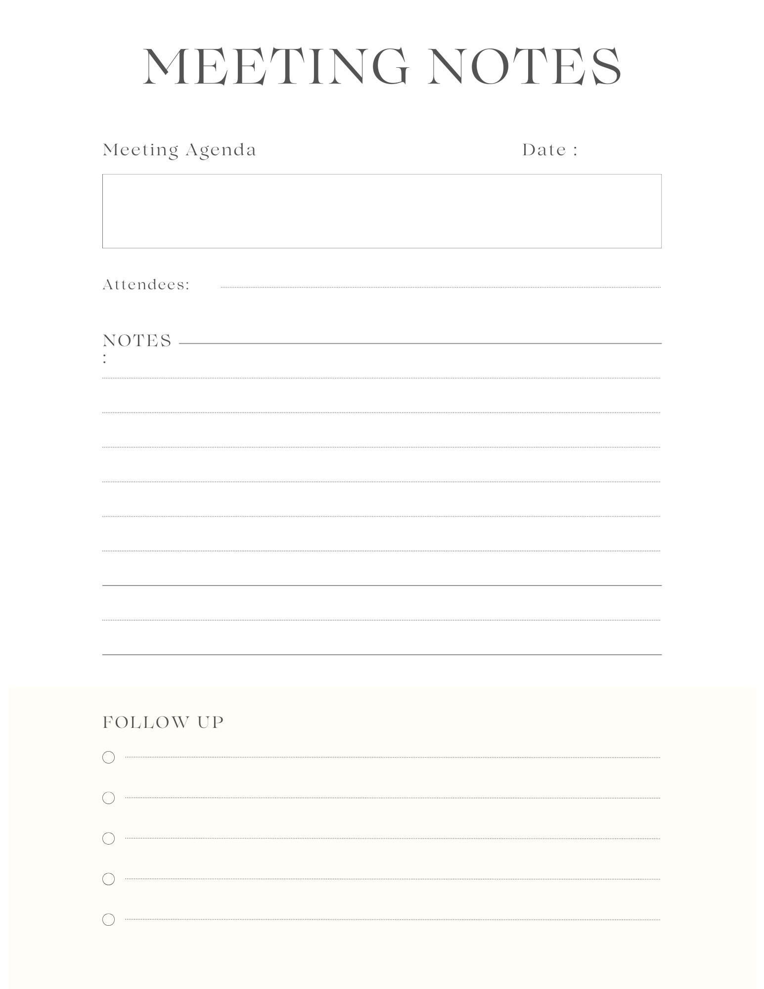 Onenote Meeting Notes Template Editable Meeting Minutes Digital