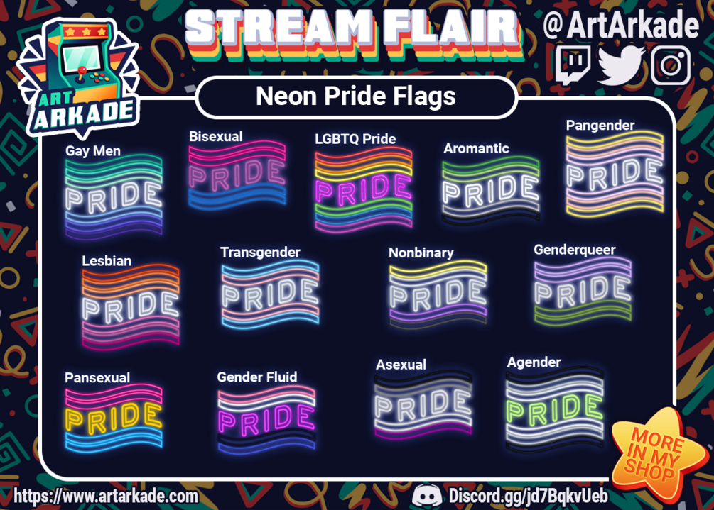 LGBT Neon Pride Flag Twitch Youtube Picarto Stream Flair