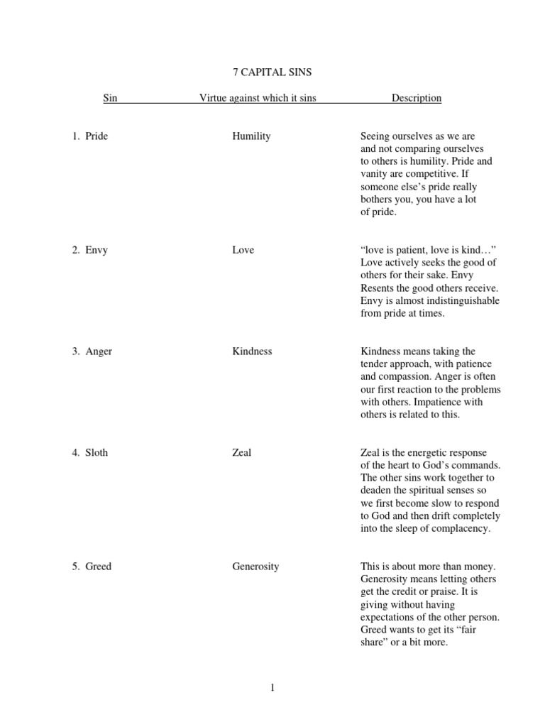 Seven Capital Sins PDF Seven Deadly Sins Christian Hamartiology