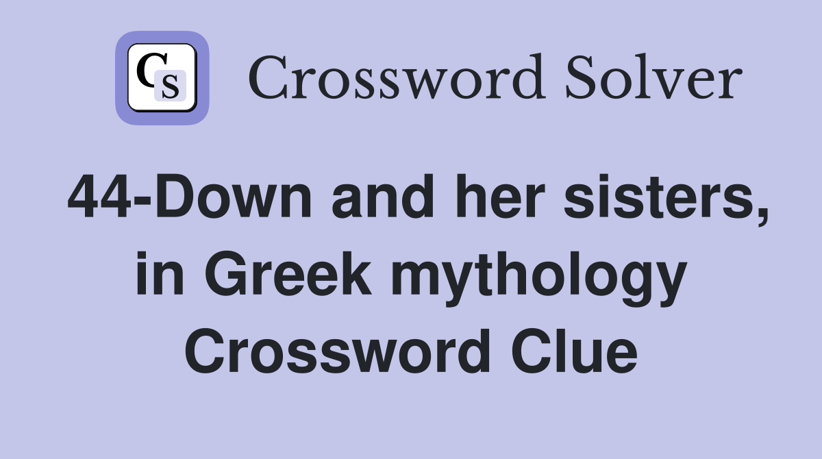 44 Down and her sisters in Greek mythology Crossword Clue Answers