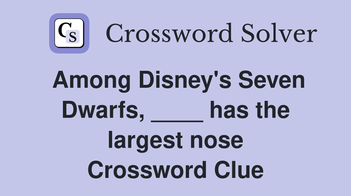 Among Disney s Seven Dwarfs has the largest nose Crossword Clue