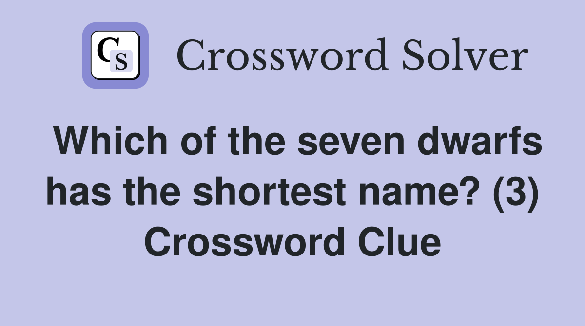 Which of the seven dwarfs has the shortest name? (3) Crossword Clue