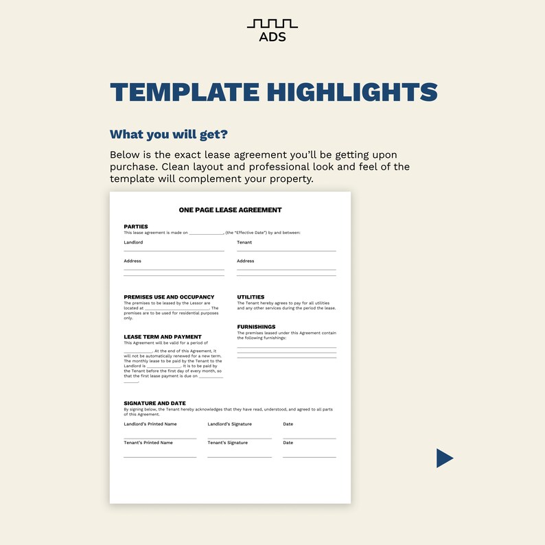 Editable One Page Lease Agreement Rental Agreement Simple One Page