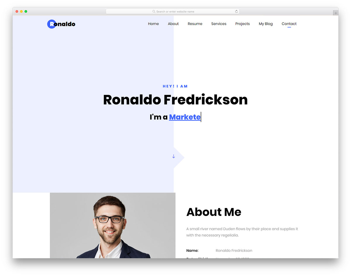 Ronaldo Best One Page Personal Website Template 2023 Colorlib