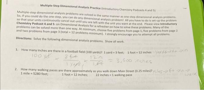 Solved Multiple step Dimensional Analysis Practice Chegg com