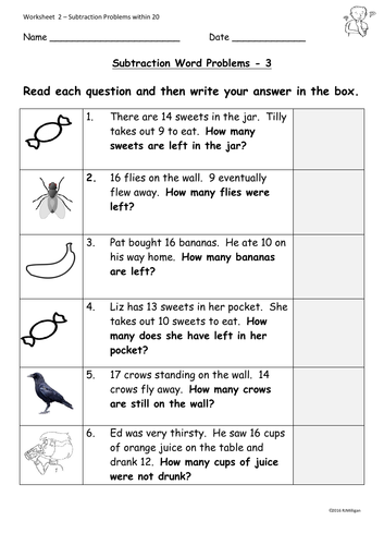 One Step Word Problems Worksheets Set 1 ExperTuition