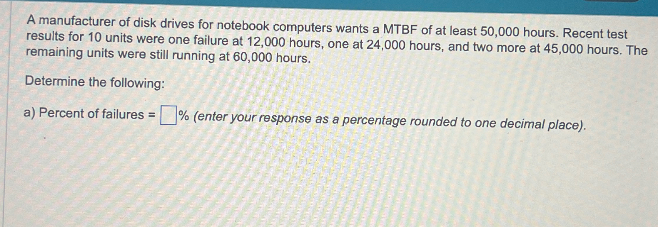 Solved A manufacturer of disk drives for notebook computers Chegg com