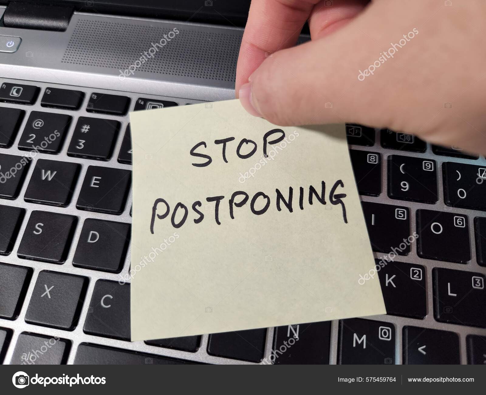 Sticky Note Words Stop Postponing Written Stock Photo © celiaosk