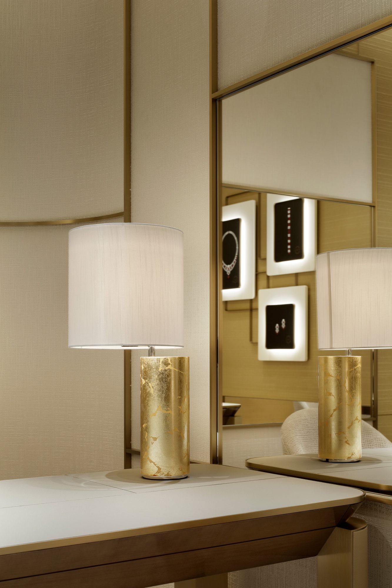 Amazing Bedroom Scene with Big Gold Frame Mirror · Creative Fabrica